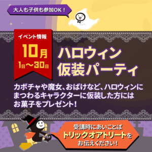 当教室では、10月1日~30日の期間中に ハロウィン仮装パーティ を開催します。