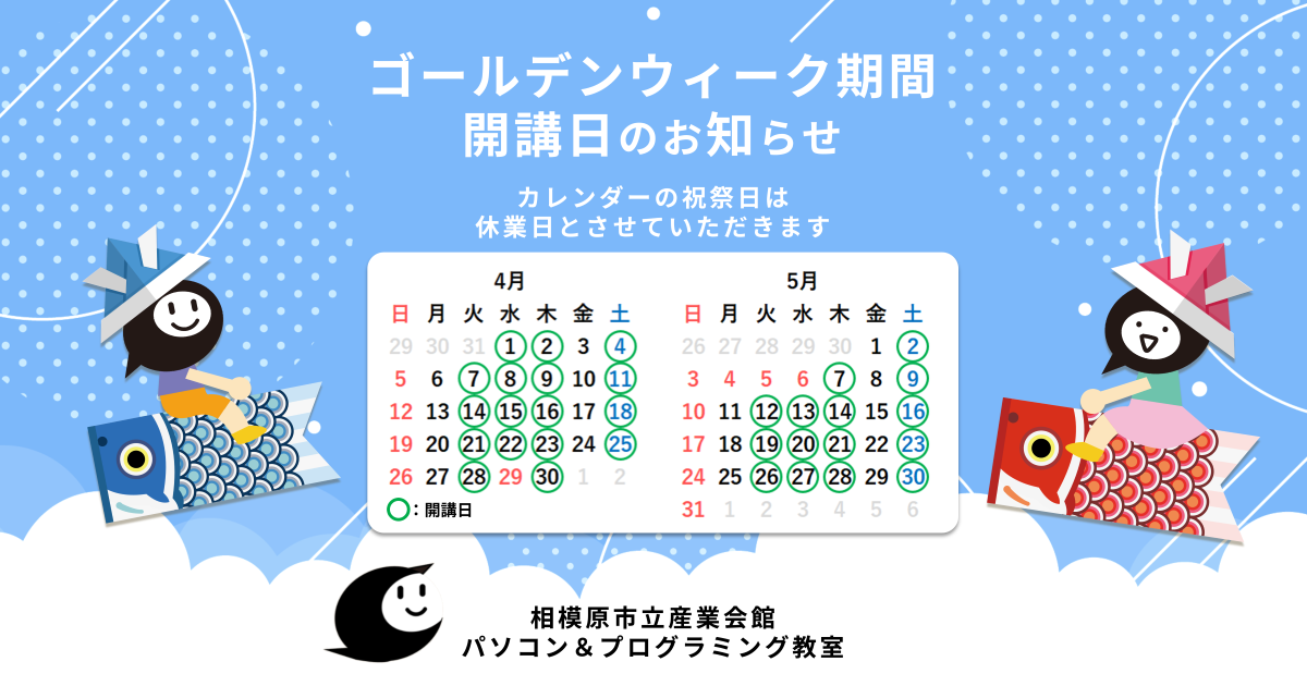 当教室では、ゴールデンウィーク期間中はカレンダー通りに開講させていただきます。